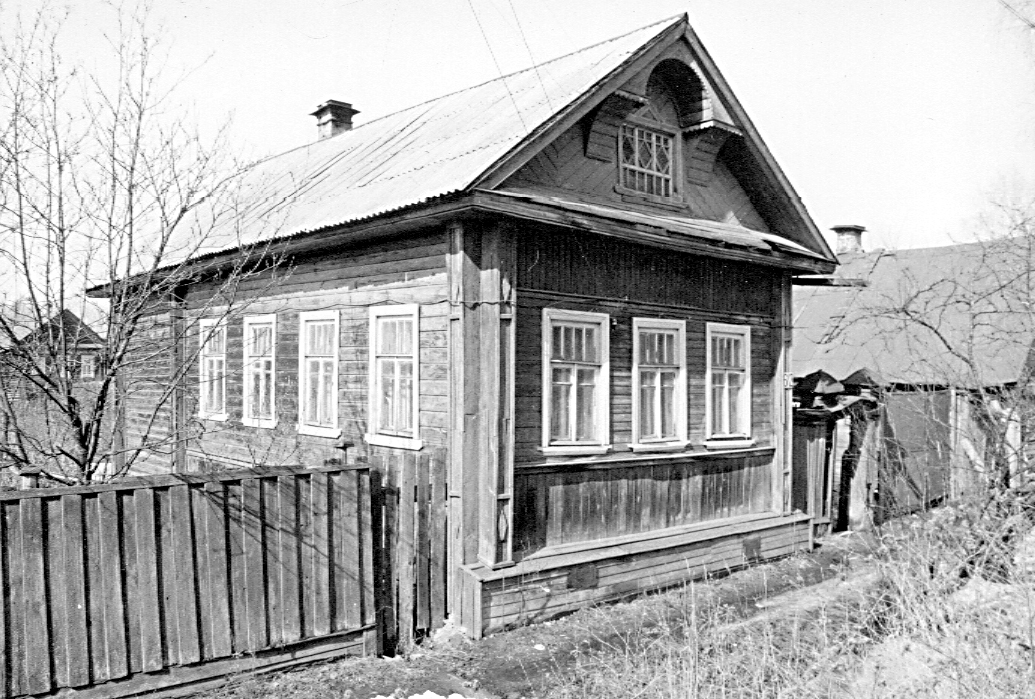 Образец рядовой деревянной застройки нач. XX в. без ярко выраженных стилевых признаков. При этом композиция главного фасада тяготеет к традициям позднего классицизма, а отдельные детали характерны для эклектики и модерна. Рубленный с остатком и обшитый тесом дом построен в 1910 г. В 2000-х гг. его основной объем был заново обшит, при этом было утрачено декоративное оформление выступов угловых венцов. Прямоугольный в плане объем под двускатной кровлей, вытянутый в глубину владения, сзади включает сени, имеющие выступ на боковом фасаде. Главный симметричный фасад в три окна завершен треугольным фронтоном. Окна, обведенные простейшими наличниками, имеют фрамуги с типичной для модерна мелкой расстекловкой. Выступы угловых венцов первоначально были оформлены филенчатыми лопатками с ромбическими накладками. Мотив ромба использован также в рисунке рамы широкого окна в тимпане фронтона. Верхнюю часть глубокого тимпана занимает арка, опирающаяся на вогнутые кронштейны. Редким элементом архитектуры малых форм являлась сохранявшаяся до недавнего времени калитка ворот, примыкавшая к дому сбоку по красной линии улицы. Ее пилоны, между которыми была переброшена лучковая перемычка, выделялись шатровыми завершениями. Лит. и ист.: Памятники архитектуры Костромской области. Вып. 3. Кострома, 2001. С. 33.