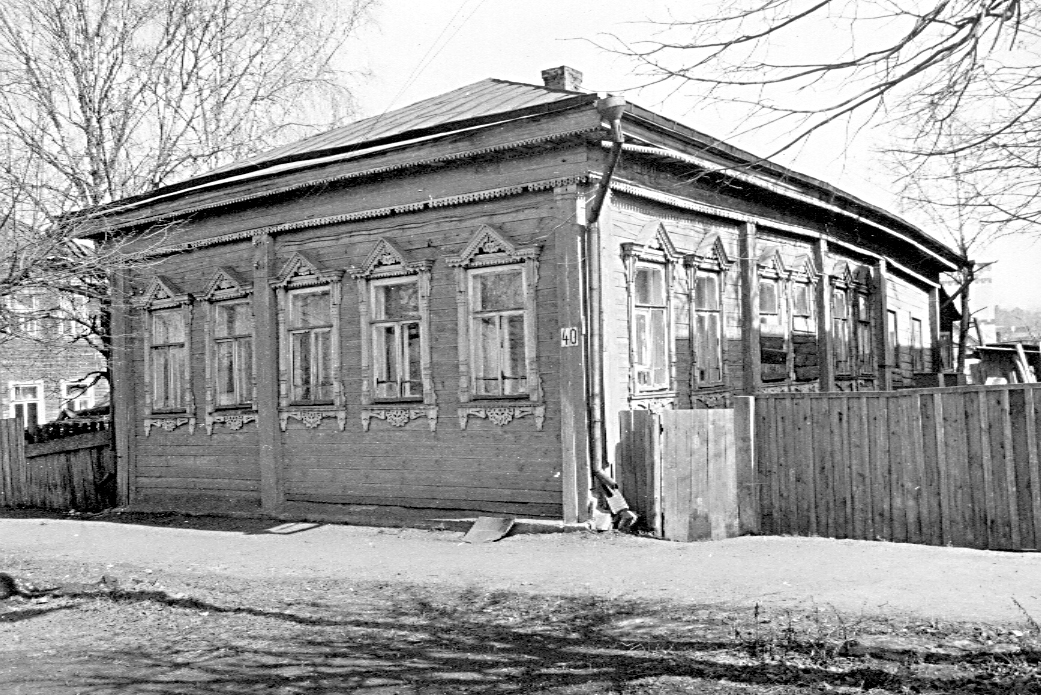 Одноэтажное здание в пять окон по фасаду, рубленное из бревен в обло и обшитое тесом, типично для рядовой застройки города периода эклектики с преобладанием в декоре элементов русского стиля. Первоначальный объем, почти квадратный в плане, расширен пристройкой к заднему восточному фасаду, подведенной под единую вальмовую кровлю. Фасадный декор здания составляют доски-лопатки на углах и в местах перерубов, гладкий фриз и венчающий карниз, дополненные узкими пропильными подзорами, и резные наличники прямоугольных окон, фигурные фартуки и щипцовые завершения которых украшены ажурными полусолнцами. Лит. и ист.: Памятники архитектуры Костромской области. Вып. 3. Кострома, 2001. С. 81-82.