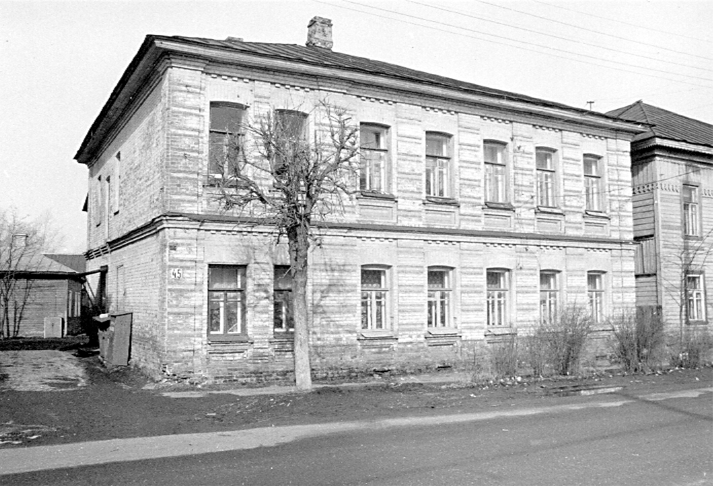 Дом жилой, кон. XIX в.Адрес Прямоугольный в плане объем, обращенный к улице протяженным восточным фасадом в семь оконных осей, завершен вальмовой кровлей. Поэтажная структура фасадов выявлена узкими профилированными карнизами, дополненными разреженными зубчиками над пологими лучковыми перемычками окон с лежачими подоконными филенками. В межоконных простенках помещены рустованные лопатки; на углах на них наложены рустованные пилястры. Лит. и ист.: Памятники архитектуры Костромской области. Вып. 3. Кострома, 2001. С. 164. Данные государственной охраны