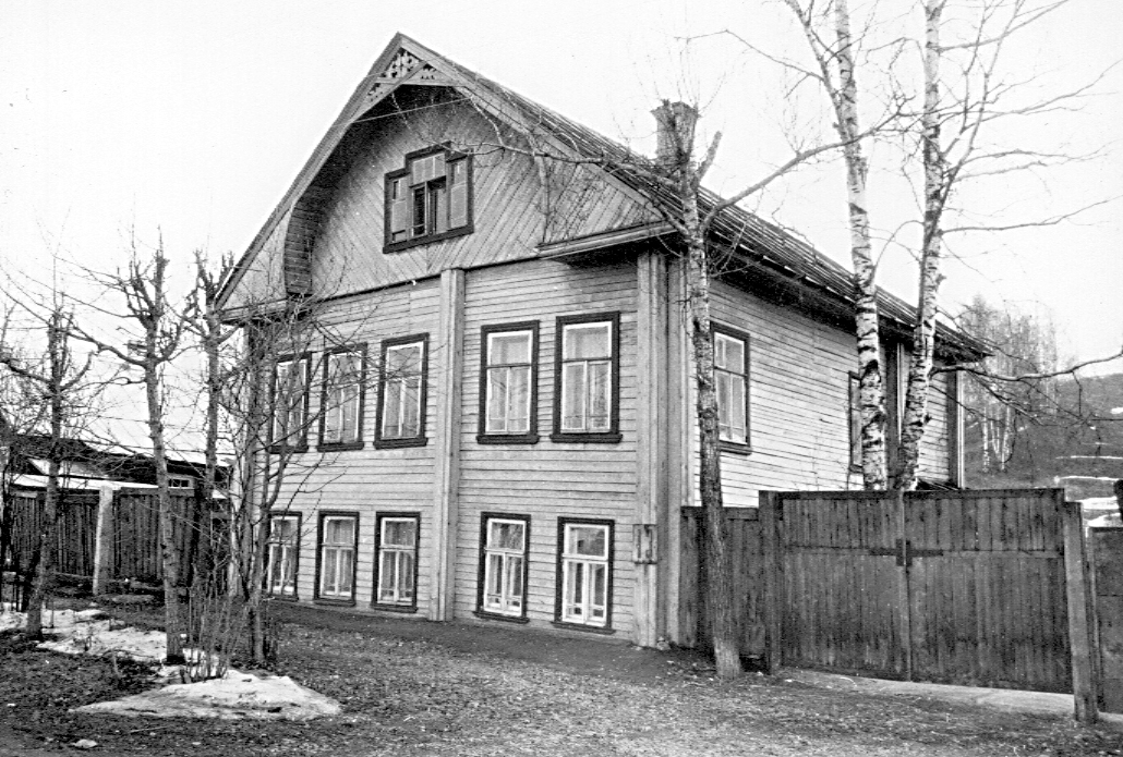 Редкий в застройке Галича пример деревянного жилого дома на двух владельцев с элементами позднего провинциального модерна в декоративном оформлении уличного фасада. Двухэтажное здание, рубленное из бревен в обло, в советское время в значительной степени утратило свой первоначальный облик: его фасады был обшиты снаружи вагонкой, большинство деталей фасадного декора уничтожено, окна, вероятно, расширены. Ряд окон первого этажа в 2000-х гг. получили современные заполнения с расстекловкой, не соответствующей исторической. Незначительно вытянутый вглубь участка, крупный прямоугольный в плане объем дома, покрытый двускатной стропильной крышей, принадлежит к одному из распространенных в Галиче типов жилища и состоит из переднего пятистенка и узких поперечных бревенчатых сеней, дополняющих его с задней стороны. Фасады, разделенные перерубами внутренних стен, имеют несимметричные композиционные решения: на уличном фасаде размещено пять оконных осей, сгруппированных по две и по три, боковые фасады с дверными проемами в сенях имеют различное количество окон на первом и втором этажах.