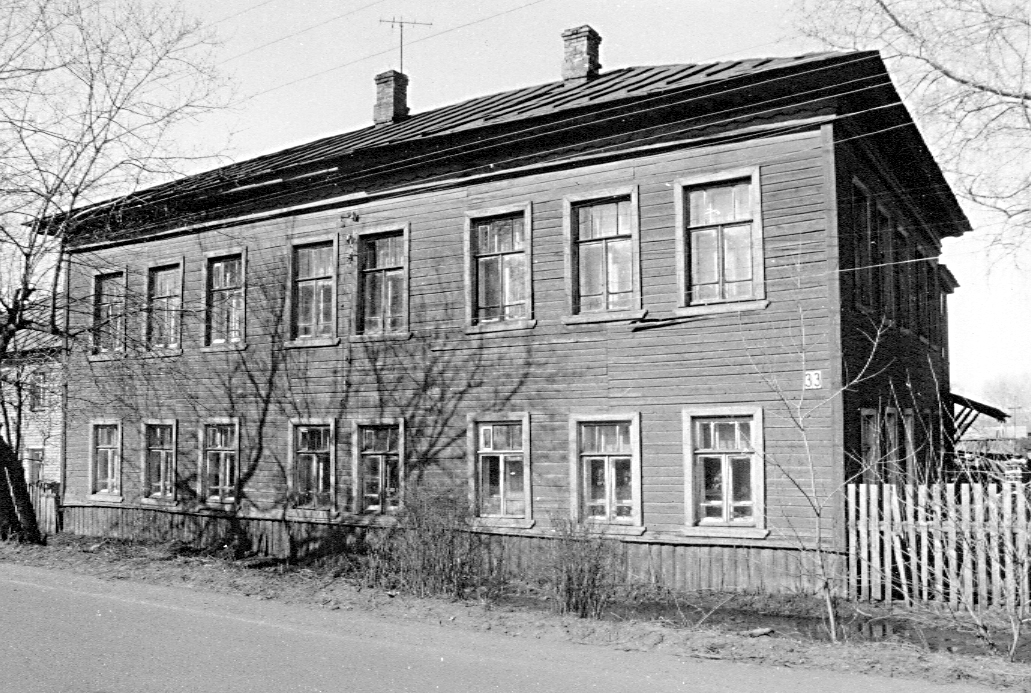 Дом жилой Скорняжниковых, нач. XX в.Адрес Стены дома сложены из бревен без остатка и обшиты тесом. Прямоугольный в плане объем, дополненный лестничными пристройками на флангах дворового фасада, завершен вальмовой кровлей. Полоса вертикально положенной обшивки, доходящей до основания нижних окон, образует подобие цоколя. Прямоугольные окна обоих этажей заключены в простые рамочные наличники. В 2000-х гг. ряд окон первого этажа получили современные заполнения с расстекловкой, не соответствующей исторической. Углы объема подчеркнуты узкими досками-лопатками, в завершении фасадов — широкий фриз и профилированный карниз с мутулами. Лит. и ист.: Памятники архитектуры Костромской области. Вып. 3. Кострома, 2001. С. 45. Персоны