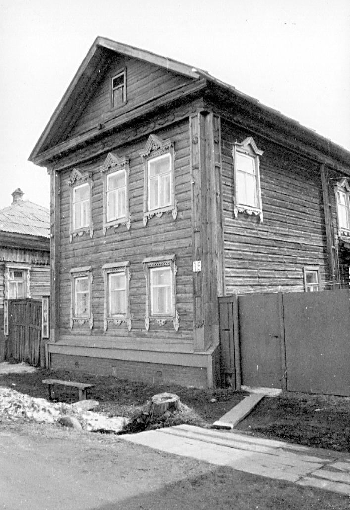 Дом жилой, кон. XIX в.Адрес В декоре здания использованы традиционные для подобных сооружений Галича резные детали: классицистический по рисунку венчающий карниз с мутулами сочетается с укрепленными на фризе круглыми розетками и ромбами, выполненными в архаичной технике трехгранно-выемчатой резьбы. Наличники прямоугольных окон с ушами и подзорами на первом этаже завершены полочками-сандриками на кронштейнах, на втором — щипцовыми навершиями. На обшивке выступающих концов бревен, имитирующей филенчатые пилястры, помещены накладные «стрелки» и круглые розетки. Композиции боковых фасадов дома несимметричны, с различным количеством проемов на первом и втором этажах. Вход в здание осуществляется через сени на правом боковом фасаде. Лит. и ист.: Памятники архитектуры Костромской области. Вып. 3. Кострома, 2001. С. 199-200. Данные государственной охраны