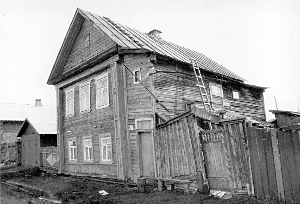 Двухэтажный дом-пятистенок, сохранивший на фасадах детали характерного для кон. XIX в. эклектичного декора с элементами классицизма, несмотря на значительные изменения внешнего облика, является составной частью застройки набережной. Дом рублен из бревен, перевязанных в обло, и обшит снаружи поздним тесом. Прямоугольный в плане объем, покрытый двускатной стропильной крышей, обращен к улице торцовым фасадом в три оконных оси. К правому боковому фасаду примыкает двухэтажная тесовая пристройка советского времени. Первоначальные хозяйственные пристройки, располагавшиеся со стороны заднего фасада, утрачены.