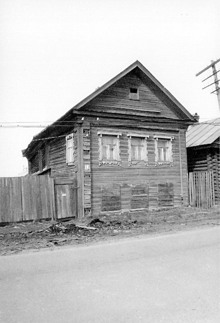 Дом жилой, кон. XIX в.Адрес Упрощенное декоративное оформление здания — мелкая порезка на причелинах фронтона уличного фасада, небольшие зубчики на венчающим карнизе, проходящем по периметру объема, и завершенные полочками наличники из пропильной резьбы на окнах второго этажа — создает образ здания, формирующего фоновую застройку улицы. Первый этаж дома первоначально, очевидно, использовался под хозяйственные нужды. Существующие ныне окна подклета прорублены в советское время. К более позднему периоду относится также обшивка выступающих хвостов венцов сруба на уличном фасаде. Лит. и ист.: Памятники архитектуры Костромской области. Вып. 3. Кострома, 2001. С. 211-212. Данные государственной охраны
