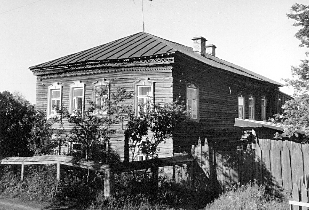 Дом жилой, 2-я пол. XIX в., кон. XIX - нач. XX в.Адрес В декоративном оформлении здания выделяются замечательные по мастерству исполнения орнаментальные подзоры пропильной резьбы с усложненным рисунком растительного характера. В правой части уличного фасада сохранился фрагмент междуэтажного карниза с упрощенным подзором. Окна передней части дома окружены поздними маловыразительными рамочными наличниками с редкими в окрестностях Галича навершиями в виде разорванных фронтончиков. Лит. и ист.: Памятники архитектуры Костромской области. Вып. 3. Кострома, 2001. С. 239-240. Данные государственной охраны
