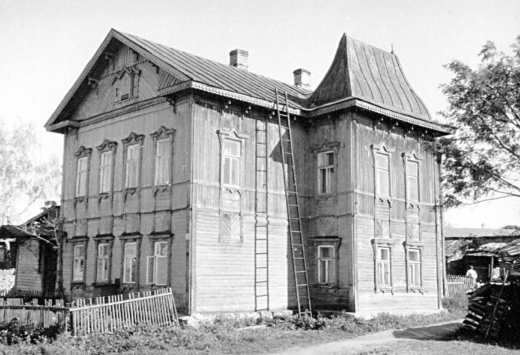 Дом жилой Бубиных, нач. XX в.Адрес В оформлении фасадов использованы широко распространенные в провинции в нач. XX в. упрощенные по характеру рисунка детали эклектичного декора. Стены по периметру объема завершены карнизом большого выноса, усложненным поясом городков и опирающимся на фигурные кронштейны; в уровнях междуэтажного членения и подоконников окон второго этажа укреплены скромные накладные профили, а тонкие угловые пилястры почти сливаются с вертикально укрепленной на втором этаже наружной тесовой обшивкой. Рамочные наличники на прямоугольных окнах, в первом этаже завершены прямыми полочками, на втором — щипцовыми навершиями. Между собой они объединены накладными рейками, образующими на фасадах подобие вертикальных ниш, в которых над окнами нижнего этажа обшивка уложена в «елку», а под подоконниками верхнего — горизонтально. В тимпане полуфронтона на переднем фасаде помещено тройное чердачное окно со щипцовыми навершиями. Над входом в здание сохранился старый металлический зонт на ажурных кронштейнах. Одинаковая на обоих этажах планировка состоит из нескольких несимметрично расположенных комнат. На второй этаж ведет маршевая лестница с точеными балясинами. Лит. и ист.: Памятники архитектуры Костромской области. Вып. 3. Кострома, 2001. С. 241. Персоны