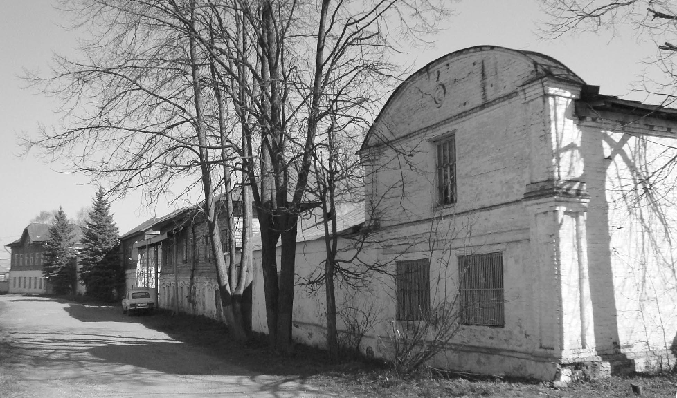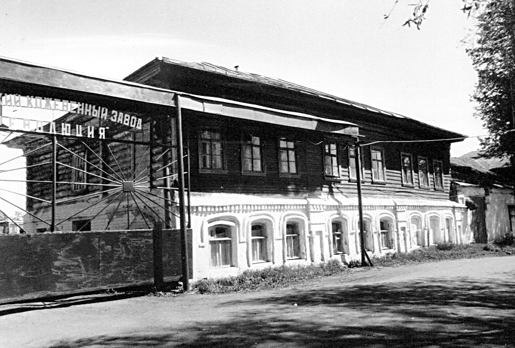 Кожевенный завод Каликиных, 2-я пол. XIX - нач. XX в., 1-я пол. XX в.Адрес Комплекс расположен в северо-восточной части Шокши на берегу реки и занимает значительный по площади участок неправильной в плане конфигурации. Сооружения комплекса неоднократно перестраивались, дополнялись новыми помещениями и пристройками. В настоящее время относительно хорошо сохранились здания, вытянутые в ряд вдоль берега реки. С северной стороны ряд заводских построек замыкает административный корпус — двухэтажное с кирпичным оштукатуренным первым и деревянным обшитым тесом вторым этажами здание, обращенное к набережной продольным фасадом в шесть равномерно расставленных оконных осей. Его первый этаж, сохранивший на переднем фасаде остатки ленточной рустовки, был сооружен, очевидно, во 2-й пол. XIX в.; второй этаж, акцентированный в центре высоким щипцом, надстроен в нач. XX в. Далее на юг выделяется большой также двухэтажный с кирпичным первым и деревянным вторым этажами производственный корпус 2-й пол. XIX в., являющийся, очевидно, самой ранней из сохранившихся построек комплекса. Его оштукатуренный и побеленный первый этаж сохранил на переднем фасаде интересную декоративную обработку, выполненную в своеобразных эклектичных формах. В соответствии с внутренней трехчастной планировочной структурой, фасад решен в девять оконных осей, сгруппированных по три. На первом этаже внутренним капитальным стенам соответствуют широкие филенчатые пилястры; окна с лучковыми перемычками обрамлены наличниками в виде кирпичных валиков; по верху кирпичной кладки проходит карниз с поясом сухариков. Обшитый тесом второй этаж завершен слабо профилированным карнизом. С южной стороны ряд построек замыкает кирпичный, оштукатуренный склад готовой продукции кон. XIX в. — двухэтажная постройка с филенчатыми пилястрами на углах, завершенная на переднем и заднем фасадах необычными лучковыми фронтонами. В глубине территории, в ее восточной части, выделяется два больших, поставленных вплотную друг к другу кирпичных производственных корпуса 1930 г., сохраняющих в своей архитектуре черты поздней эклектики. Прямоугольные в плане здания, покрытые двускатными с треугольными кирпичными фронтонами на торцах крышами, освещается чрезвычайно высокими, равномерно расставленными арочными окнами с замками в перемычках. Обработанные пилястрами фасады завершены широкими карнизами упрошенного рисунка. Над углами одного из корпусов сохранились аттиковые тумбы. В северной части территории завода расположен еще один сильно перестроенный в советское время двухэтажный кирпичный производственный корпус, в основе которого, сохранились части стен более раннего здания XIX в.; рядом с ним — одноэтажная кирпичная хозяйственная постройка кон. XIX в. Лит. и ист.: Костромские губернские ведомости. Часть неофициальная. Кострома, 1863. № 30; Зайцев М. Познай свои корни: Очерки по истории Шокши и кожзавода «Революция». Галич, 1993. С. 15-18; Памятники архитектуры Костромской области. Вып. 3. Кострома, 2001. С. 225-227. Персоны
