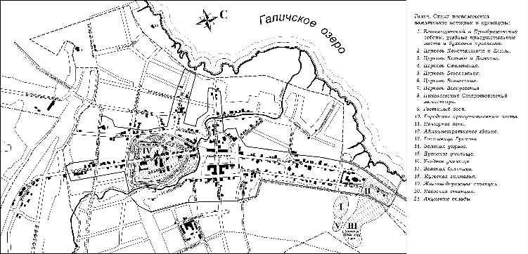 Центральная часть г. Галича. Схема расположения памятников истории и культуры